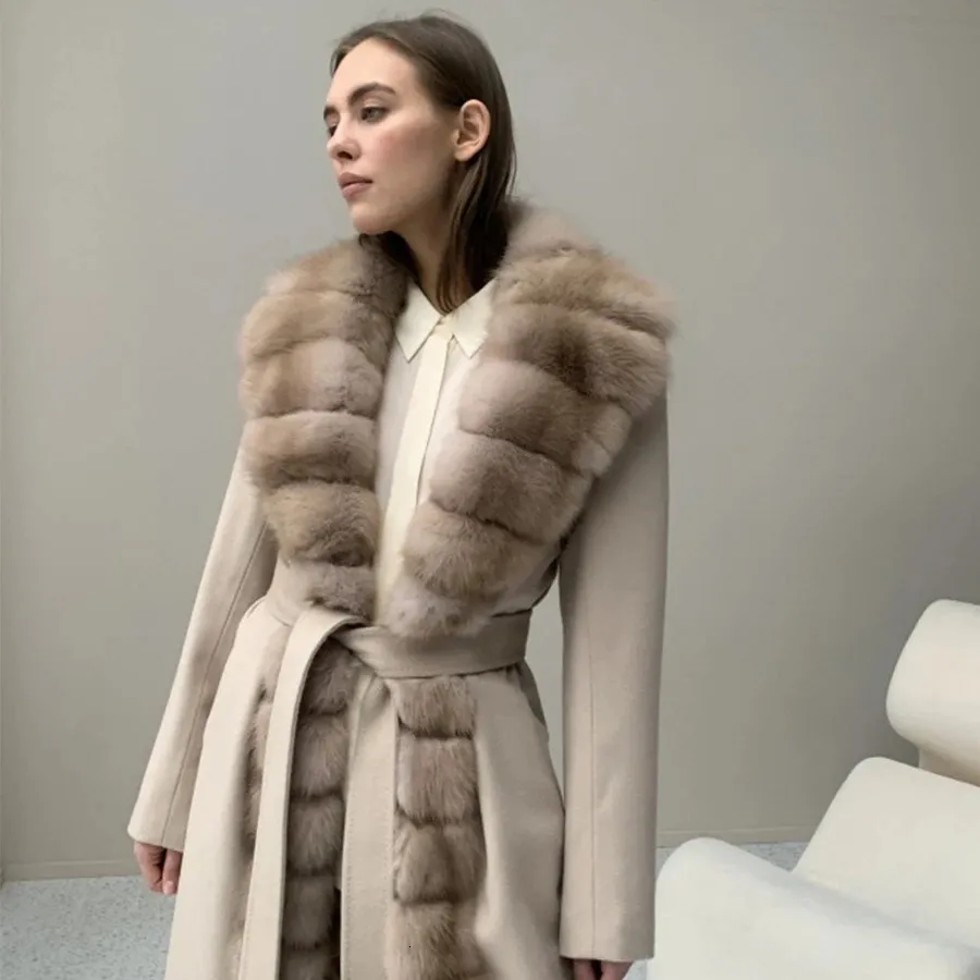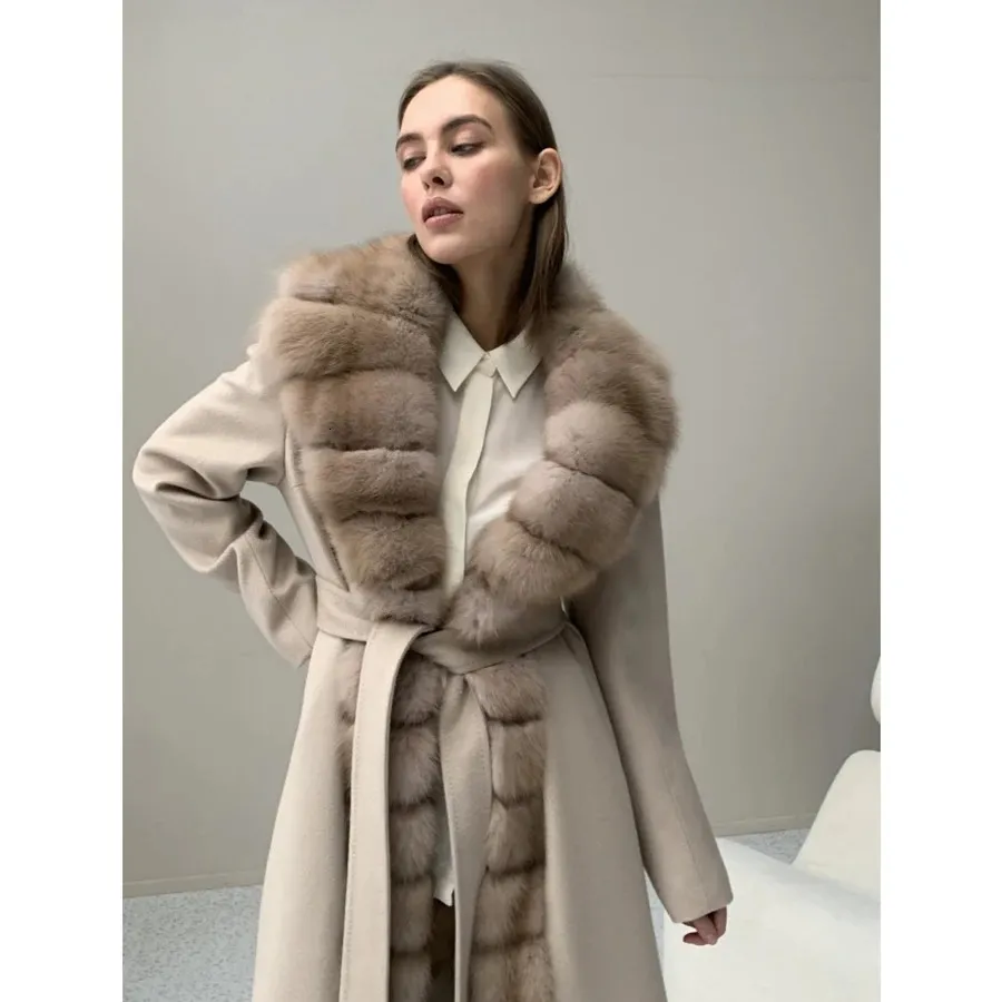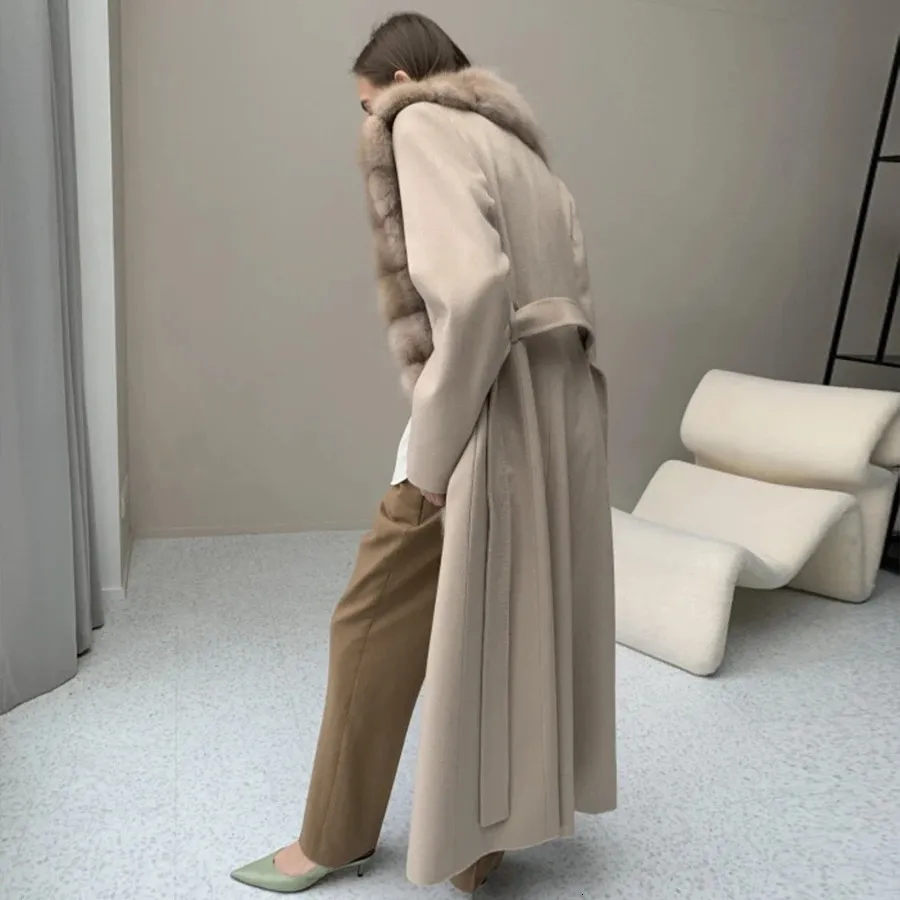 Indulge in winter elegance with this Cashmere Wool Coat, featuring genuine natural fox fur for a warm, premium, and high-end finish. Crafted from a soft cashmere-wool blend, it offers a refined silhouette and exceptional comfort, making it the perfect statement piece for cold seasons.
